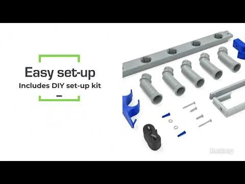 The Bestway® StorePro™ Pool Accessory and Equipment Organizer helps you hang all of your pool-cleaning tools in one convenient location. This holder features storage slots for up to 5 skimmers, brushes, rakes, vacuums or any other type of tool with a 1.2 in. (3 cm) diameter handle. There is also a spot for up to 2 poles, plus a strap for a hose and hooks for miscellaneous accessories. This organizer will maximize your storage space and keep everything easily accessible. It’s simple to install – either screw it into a wall or hang it over the top of a fence. No matter how you use it, all the necessary hardware is included in this set. The hangers can be adjusted up to 3 in. (7.62 cm) in depth, providing flexibility and versatility. The StorePro is a durable option, with steel and plastic mount support, holding up against the outdoor elements. Grab the StorePro and have your backyard pool area organized in no time!