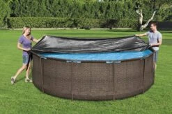 Keep debris, leaves, and trash from getting into your pool with this Flowclear™ pool cover. Above ground swimming pool covers prohibit algae growth and reduce costly replacement chemicals when the pool is in not in use. This pool cover has drain holes to prevent water from accumulating on the cover. The pool cover is easy to install, extremely durable and includes ropes to secure the cover to the pool. Fits Ø12’/3.66m Steel Pro™, Ø12’/3.66m Power Steel™, Ø12/3.66m Hydrium™ Splasher Pools.