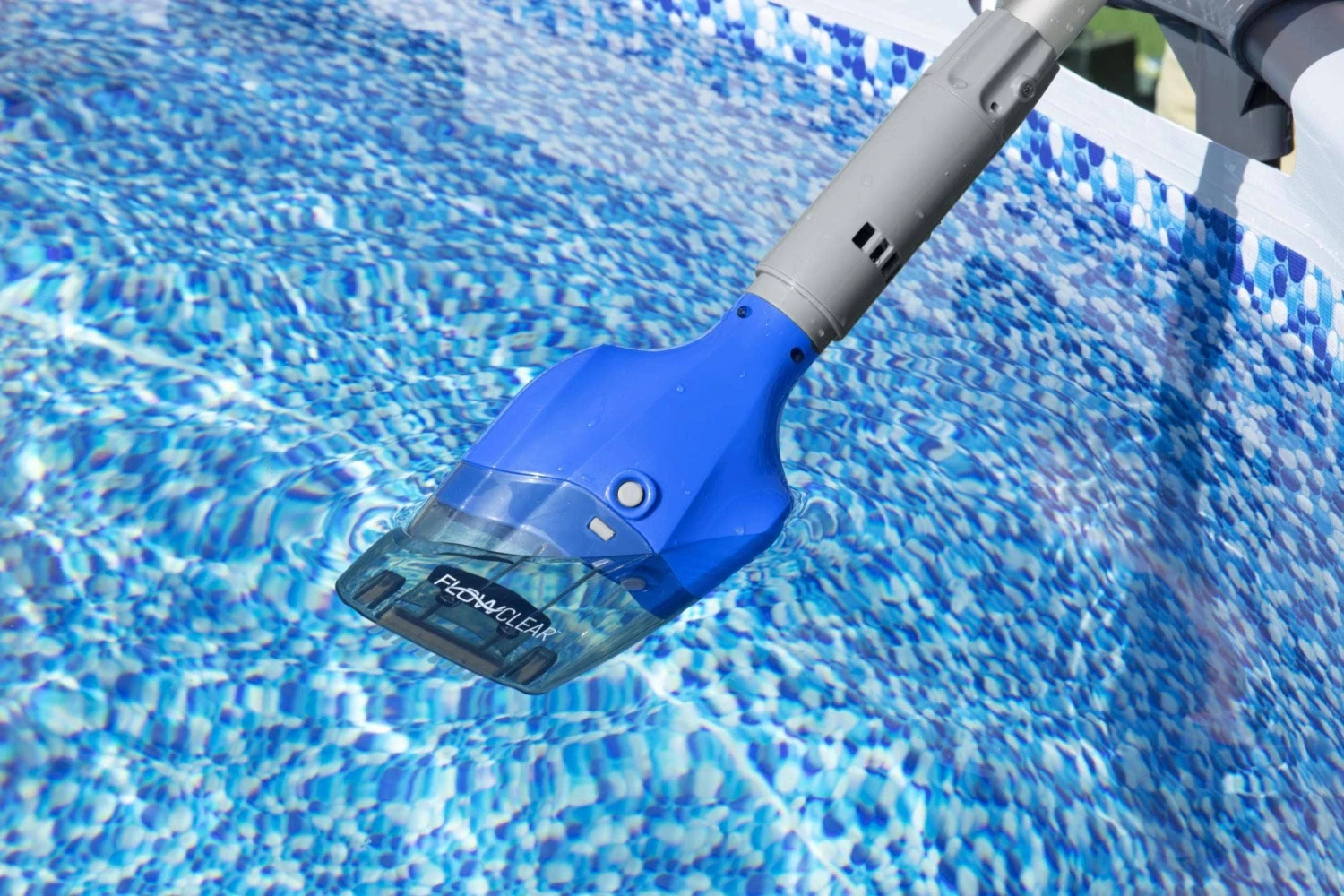 - Contents: 1 Flowclear silver cordless pool vacuum